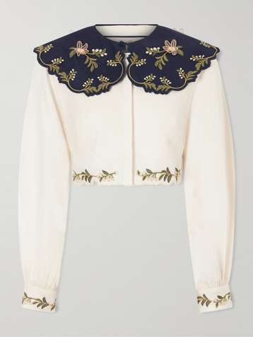 Cumbre floral-embroidered appliquéd tiered linen shirt