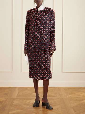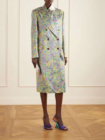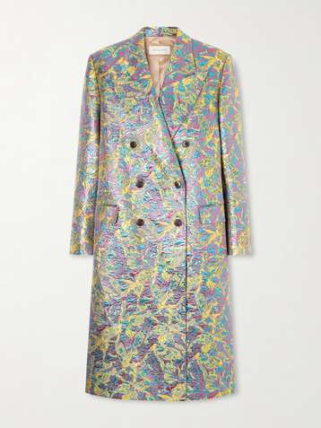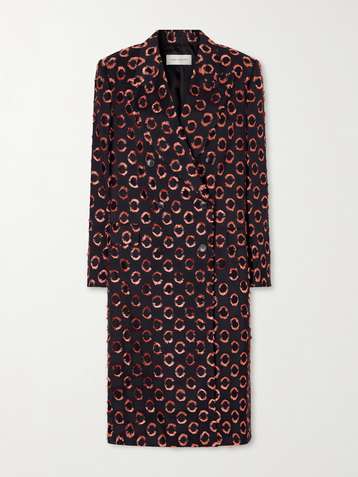Double-breasted polka-dot fil-coupé silk-blend coat