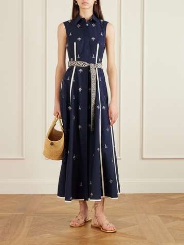 Emporio Sirenuse’s resortwear will give you “a confident sashay from beach to bar,” says the brand. Founded by Carla Sersale, the label is named after the elegant Italian hotel on the Amalfi Coast and features gorgeous saturated color palettes. Expect light, summery pieces with ornate patterns inspired by European and Far Eastern artwork.
