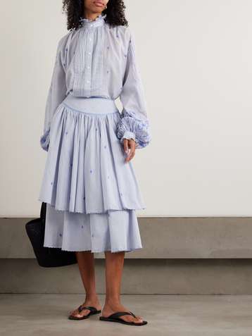 Constance gathered tiered embroidered cotton-voile midi skirt