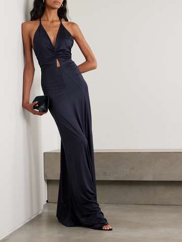 Cutout ruched stretch-satin gown