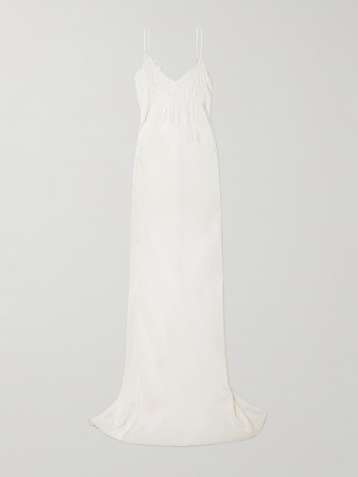 Lace-trimmed satin-crepe gown