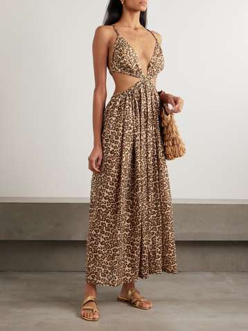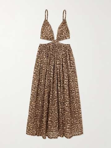 Wanderlust cutout leopard-print cotton-voile maxi dress