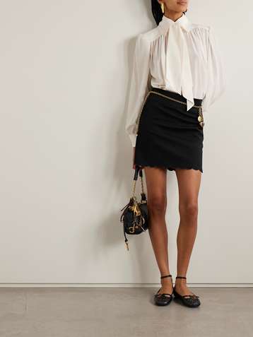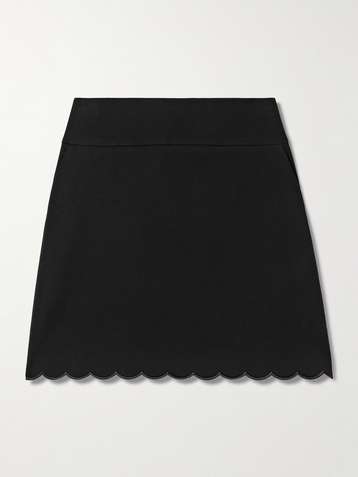 Feather-trimmed wool and silk-blend crepe mini skirt