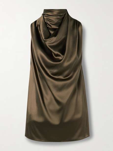 Altuzarra's Fall '25 runway was held in lower Manhattan and upon every seat was a copy of Emily Brontë’s Wuthering Heights, which inspired the collection's narrative. The 'Sleary' top is cut from silk-satin in an 'Oak Moss' shade that calls to mind the Yorkshire landscape the book famously describes. It's artfully draped with a cowl neckline and has a paneled back.