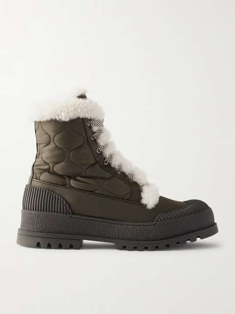 Aquazzura's 'Glacier' boots are lined with plush shearling that tufts at the collar. They're made from quilted nylon and leather and set on lug soles, bettering their grip on rainy streets.