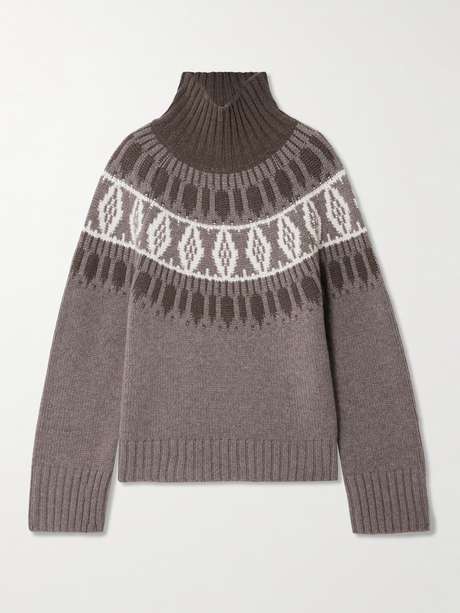Arch4's sweater is named after the beautiful Canadian skiing destination 'Whistler', so it's just the thing to pull on after a long day on the slopes. It's knitted from cozy cashmere with a folksy Fair Isle pattern. The turtleneck, hem and cuffs are ribbed for warmth.