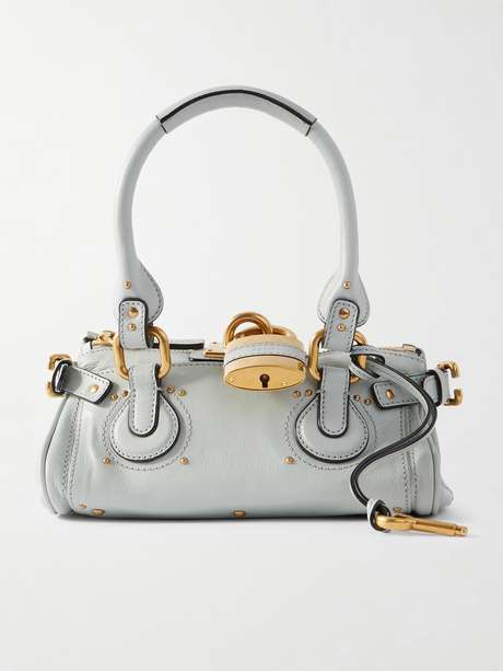Chemena Kamali revives Chloé’s iconic ‘Paddington’ tote with updated details, marking 20 years since its debut on the Spring ’05 runway. This version is made from blue leather in an East-West barrel shape with adjustable gussets and gold-tone hardware, including a padlock and key. Add the label's plush charms and stow your phone, wallet and a few cosmetics inside.