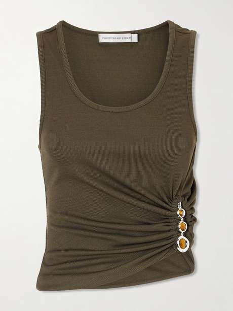 CHRISTOPHER ESBER Droplet embellished ruched ribbed-jersey tank
