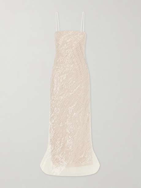 Danielle Frankel's 'Noemi' gown has an ethereal quality, almost as if it’s drifted in from another world. Made from organza with a subtle sheen, it’s set on slender straps and flares gently at the hem. Style it with statement earrings.