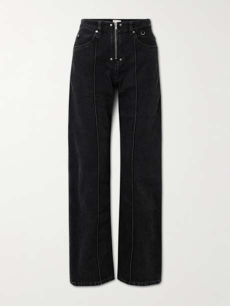 The contrasting red stitching on Isabel Marant's 'Stely' jeans is seen throughout the label's rebellious Fall '25 collection. Made from rigid denim, they're cut straight and have an exposed zip to match the silver-tone rivets and D-ring. A leather logo patch details the back.