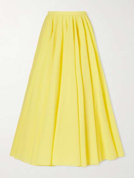 With ''Le Paysan', Simon Porte Jacquemus pays tribute to things that have shaped his career so far, including a rural countryside upbringing filled with bright vegetables and flowers. As uplifting as a sunny day in the south of France, this yellow skirt is cut from crepon and has artful volume.