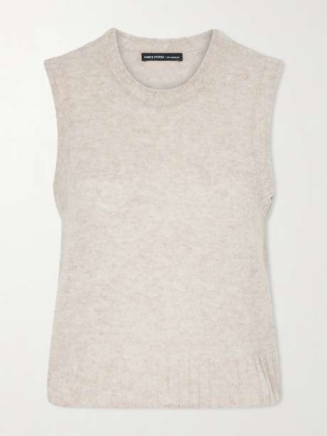 James Perse’s collections balance casual ease with a clean, contemporary aesthetic. This vest is knitted from soft, warm cashmere in a relaxed fit with a ribbed neckline and hems. Wear it solo or layered over T-shirts and shirts.