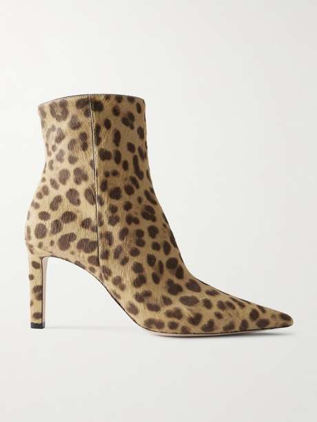 EXCLUSIVE AT NET-A-PORTER. The leopard spots on Jimmy Choo's 'Frankie' ankle boots encapsulate the label's fierce femininity. Crafted in Italy from pony hair, they have sharply pointed toes and rest on slim block heels that offer 85mm of lift. Wear yours to incorporate more pattern into your outfit.