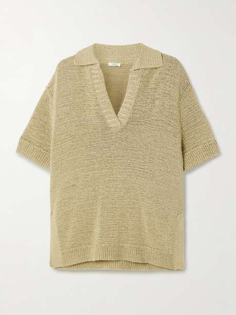 Joseph's 'Rian' shirt is knitted in an airy, open construction that's ideal for warmer climes. In a muted green shade, it has a loose shape defined by ribbed trims and a relaxed polo collar. We like it styled with linen trousers.