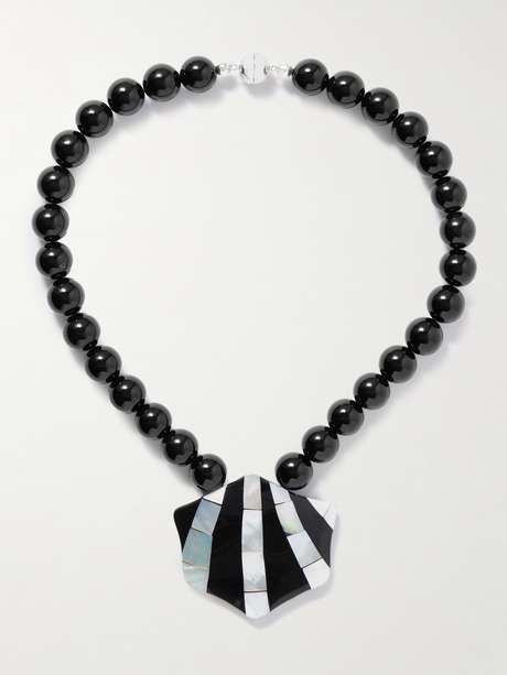 JULIETTA Maris silver-tone onyx, resin and shell necklace
