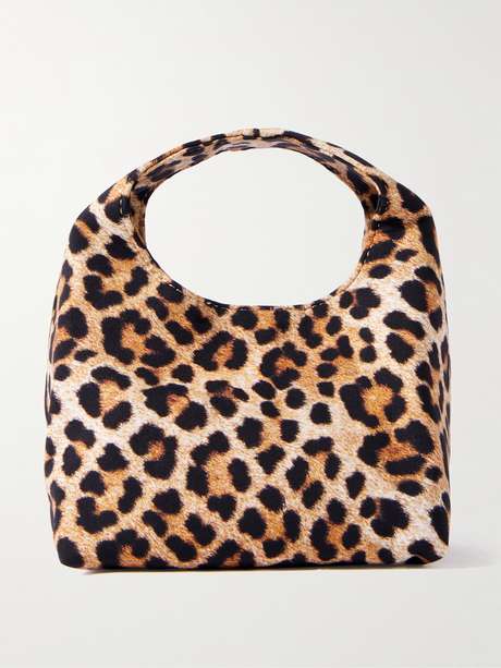 Loeffler Randall's 'Kenzie' clutch has an oval bucket-inspired shape that feels distinctly modern. Made from soft leopard-print jersey, it has a curved handle and will fit your beauty essentials, including your lipstick or balm and compact.