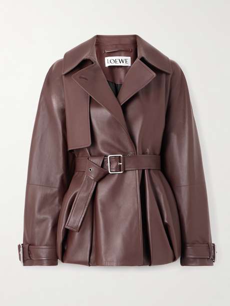 Loewe's jacket is a reimagined version of the classic trench coat. Made in Spain from dark-brown leather, it has oversized notch lapels, a storm flap and a belt to highlight your waist. It'll look just as good with jeans as it does with mini dresses.