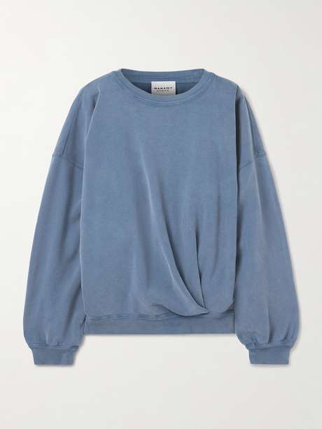 Marant Étoile's 'Sauria' sweatshirt is gathered along the hem, creating subtle texture and volume. It's cut from cotton-jersey in a soft blue shade.