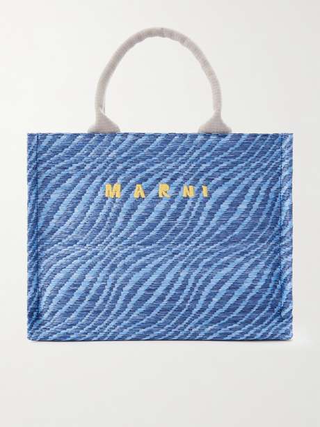 MARNI Basket small jacquard raffia-effect tote