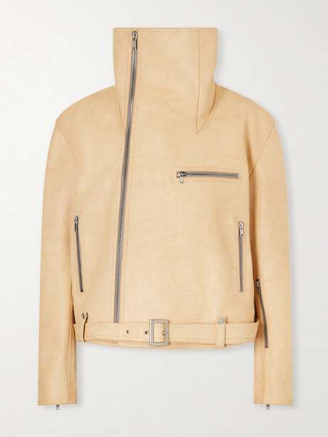 Rick Owens' biker jacket is designed to create a bold, sculptural silhouette. Made from supple leather, it has an oversized cut with a wide collar, zipped pockets and a belted hem. Wear it with your hair tucked in for an avant-garde look.