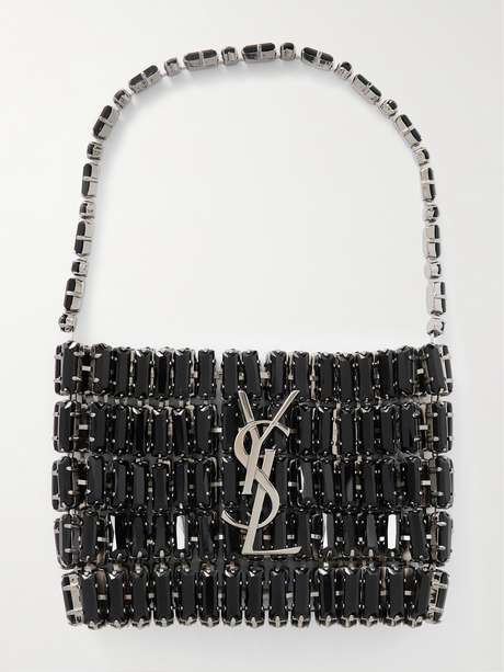 SAINT LAURENT's shoulder bag will up the ante of any outfit. Made from silver-tone metal and light-catching crystals, it's embellished with the label's 'YSL' logo and has an unlined interior. Stow your lipstick, cardholder and compact inside.