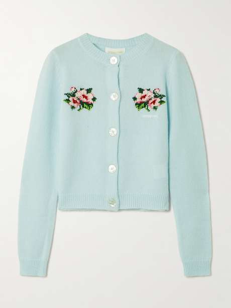 SHUSHU/TONG's cardigan is reminiscent of retro knitwear, with intricate beading that resembles flowers in bloom. It's made from pure cashmere for a supremely soft handle and is knitted for a slightly cropped fit.