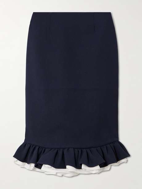 The ruffled peplum hem of SHUSHU/TONG's skirt is designed to resemble a blossoming bud. It's cut from wool-twill in a straight shape and trimmed with white for contrast. Wear yours with a little top and Mary Janes.