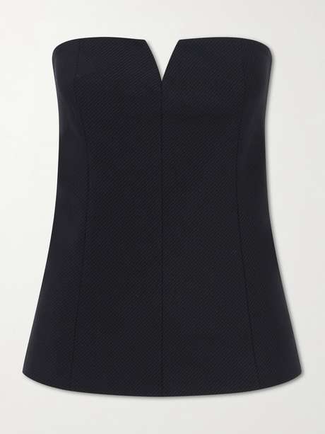 ST. AGNI's strapless top is designed with a structural edge. Spun with plenty of wool, it's tailored to a sculpted bodice traced with tonal pinstripes.