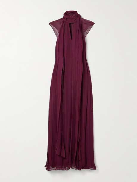 STAUD's 'Camilla' dress has a voluminous scarf that wraps elegantly to create turtleneck - adjust it so it flows behind you with every step. Cut from airy crepon, it has a relaxed, billowing shape and comes in a deep claret shade.