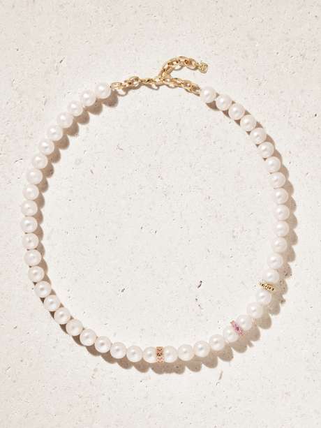 SYDNEY EVAN 14-karat gold, sapphire and pearl necklace
