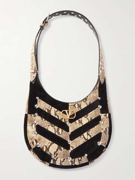 Valentino Garavani's bag is made from panels of snakeskin and suede arranged in a chevron pattern. Dotted with silver-tone studs, it has an adjustable shoulder strap and is embellished with the house's 'VLogo' in contrasting gold-tone metal at the front. Stow your wallet, keys and sunglasses inside.