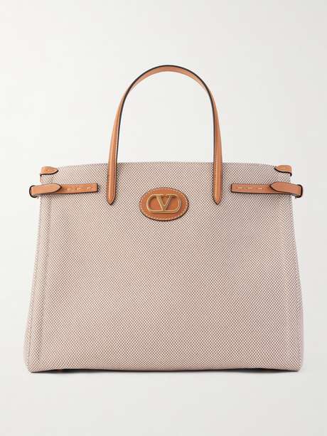 VALENTINO GARAVANI Antibes medium leather-trimmed checked canvas tote bag