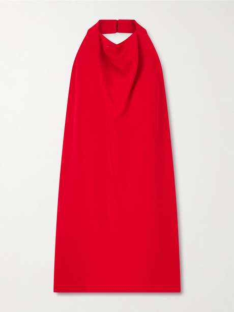Draping gives Valentino Garavani's dress softness at the neck, which balances out the rest of the clean lines. It's cut from silk-cady in the label's signature red shade.