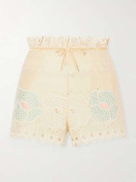 Radiating charm, Valentino Garavani's shorts evoke antique styles in the loveliest way. They're made from broderie anglaise cotton, deftly embroidered with lacy blooms.