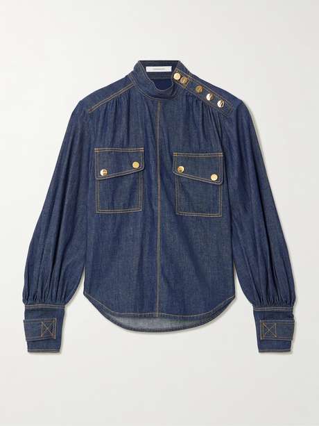 Zimmermann’s blouse balances utility with the label's signature romantic touch. Cut from denim, it’s defined by voluminous sleeves and has gold-tone button fastenings, which are etched with the brand's logo. Style yours with the matching skirt to recreate the runway look.