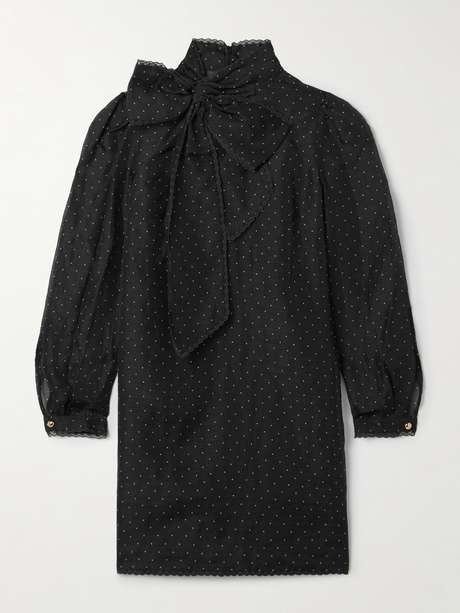 From the pussy-bow to the polka-dot print, Zimmermann's mini dress has a romantic feel. It's made from breathable linen and silk-blend organza and traced with delicate lace trims. Accessorize with tights, pumps and a swipe of red lipstick.