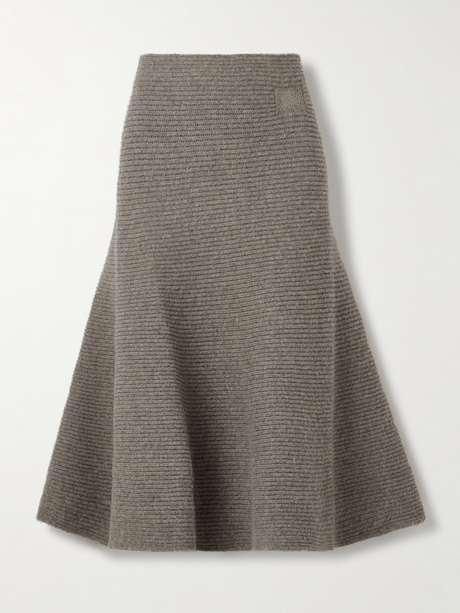 Burberry's skirt has a close fit that kicks out to a softly pleated hem. It's made from ribbed wool-blend and features the 'EKD' emblem at the waist.