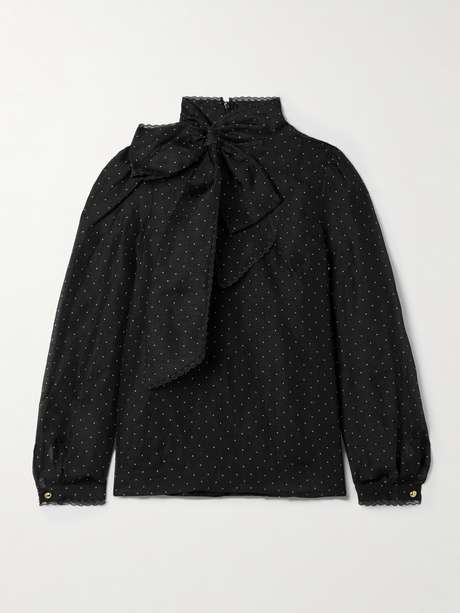 Zimmermann's blouse has a vintage feel, thanks to its polka-dot pattern and dramatic pussy-bow ties. Cut from polka-dot linen and silk-blend organza, it has a relaxed fit and delicate lace trims. Wear yours as a set with the coordinating pants in our edit.