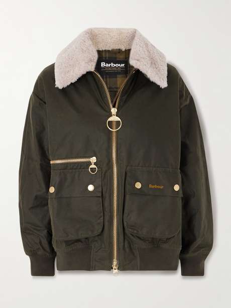 Family-run label Barbour has been making its iconic jackets in the same factory in South Shields, England, for over 130 years. This 'Maxine' style is made from durable waxed cotton and has a relaxed fit and a detachable faux shearling collar.