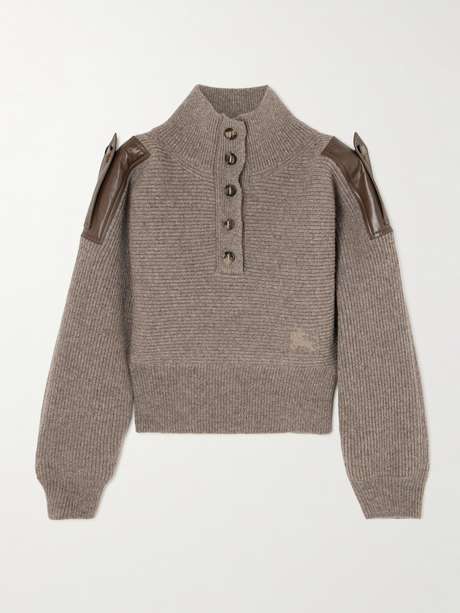 Burberry's Winter '25 collection is filled with the kind of pieces you'd want to wear on a countryside escape. This sweater is rib-knitted from wool-blend that has been brushed on the inside to enhance its softness. The leather epaulettes and embroidered 'Equestrian Knight' logo are house signatures.