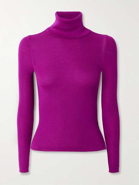 SAINT LAURENT's turtleneck sweater has a chic yet minimal silhouette that can be styled in a variety of ways – the brand likes it layered under a sharp blazer. Made in Italy from wool, cashmere and silk-blend, it's knitted for a close fit and has a flattering ribbed finish.