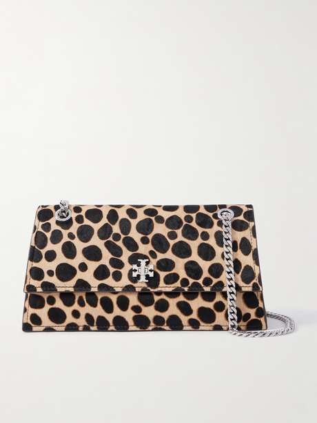 Tory Burch's 'Kira' bag is made from calf hair patterned in classic leopard spots. Slung from a chain strap, it has compact proportions and will fit a phone, earphones and lipstick.