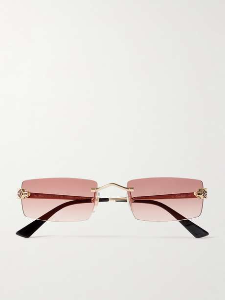 Cartier makes some of the most elegant eyewear you can find. These 'Panthère Classic' sunglasses are made from gold-tone metal with a sculptural take on the iconic panther head at each temple and rimless, angular lenses. Acetate tips ensure they feel comfortable.