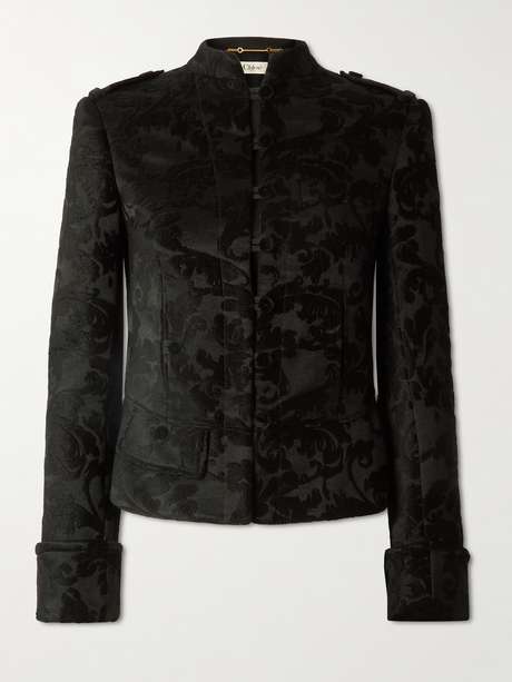 Chloé’s jacket reinterprets classic military tailoring through a fresh, contemporary lens. It's made from velvet that's jacquard-woven with a rich damask pattern and has a slim shape complete with a stand collar and shoulder epaulettes.