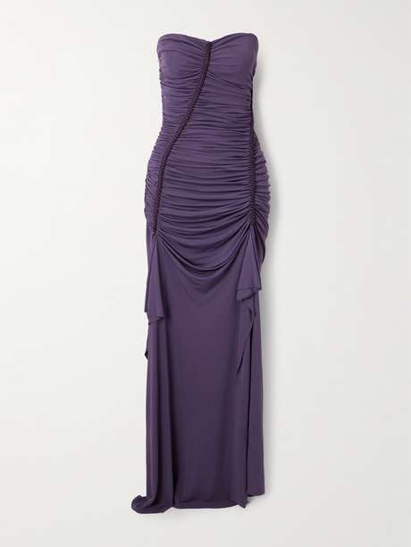 Christopher Esber's dress is inspired by 'Shibari', the Japanese art of rope binding and tying. It's artfully ruched using cords, creating beautiful texture and drape. Made from jersey, it's designed for a close fit and has a strapless, sweetheart profile.