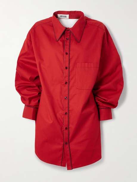 Christopher John Rogers' shirt pays testament to the joy of dressing up. Cut from cotton-twill, the deconstructed profile and alluring open back is guaranteed to turn heads. Look closely and you'll notice the tonal striped trim.