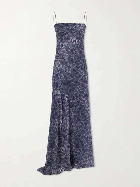 Crafted from fluid silk, the 'Meena' dress by Cortana features a softly diffused print that enhances its draped silhouette. Its graceful movement and refined ease create a sense of quiet femininity. An understated piece with a contemporary feel.
