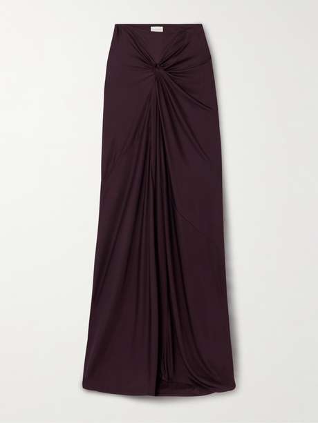 Dries Van Noten's maxi skirt is artfully knotted through the waist to create beautiful gathering throughout. It’s made from smooth jersey that falls effortlessly over your frame to a floor-pooling hem. Wear yours with a tonal tank or blouse.