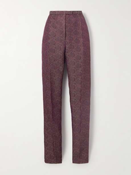 Dries Van Noten's pants subtly glisten with lustrous spirals – they picked up the low light gorgeously at the Fall '25 show. They're tailored in a slim profile from jacquard that's crisp and holds the shape well.